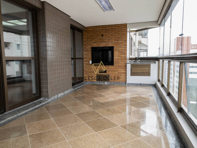 Apartamento com 288m², conta com três suítes com closet, total de cinco banheiros, sala de estar com lareira e sala de jantar. A cozinha possui armários planejados e despensa, além de área de serviço. O imóvel dispõe de varanda gourmet fechada, com churrasqueira e bar, 4 vagas de garagem cobertas. Apartamento amplo e bem distribuído, ideal para quem busca conforto e espaço.